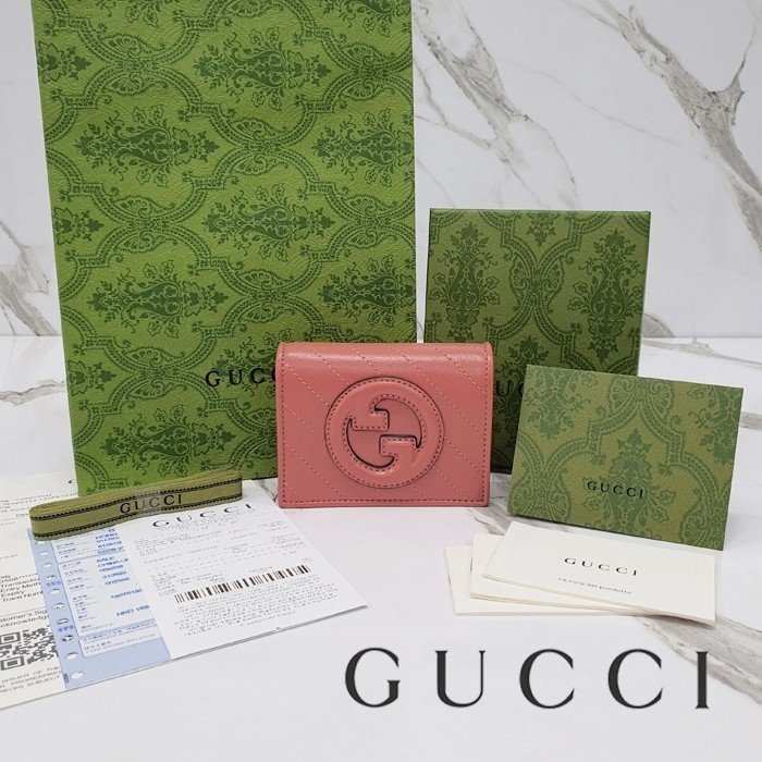 🔘색상 : 핑크레더 🔘사이즈 : W11cm x H8.5cm x D3cm 🔘기타정보 : -스타일 NO. 760317 -여성용 반지갑 -소재 최고급 소가죽 -포켓 지폐1/카드6/코인1 -본품+더스트+박스+책자+영수증+쇼핑백 풀구성