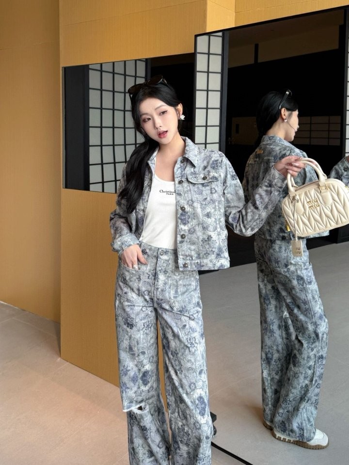 ✔ 커스텀 트윌 데님 코튼 ✔ 플로럴 프린트 & 허니비 자수 ✔ 워싱 가공, 디스트로이드 디테일