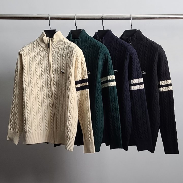 [국내배송]라코스테 로고와펜 완장 케이블 니트 집업