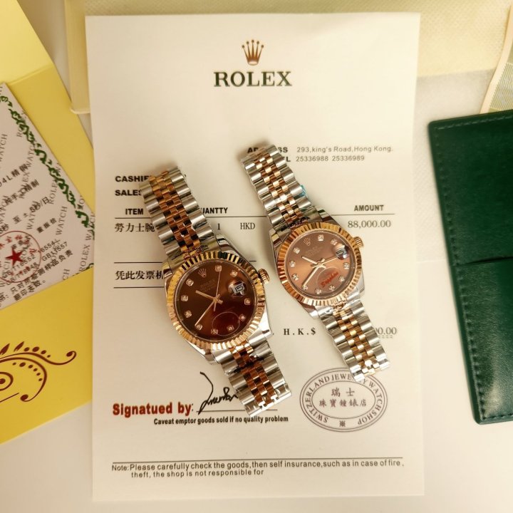 [국내배송]로렉스 텐포인트 브라운 핑크콤비 메탈 시계 -커플-