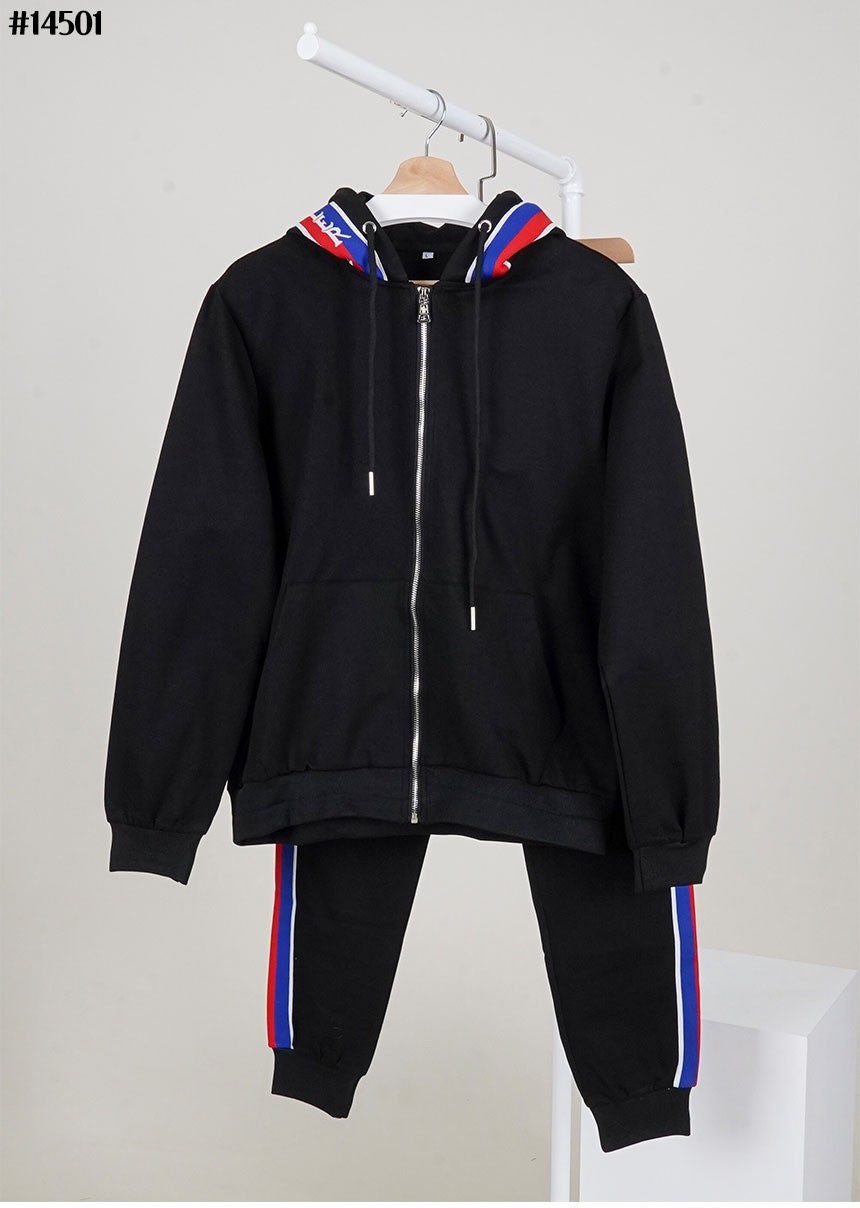 [국내배송]몽클레어 남성 로고 패치 코튼 스웨트 후드 집업 & 로고 패치 트랙 조거 팬츠 셋