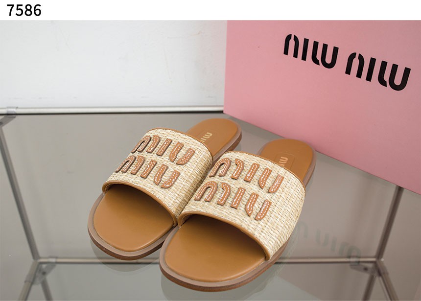 [국내배송]미우미우 수입고급 라피아 효과 우븐 패브릭 슬라이드 수량