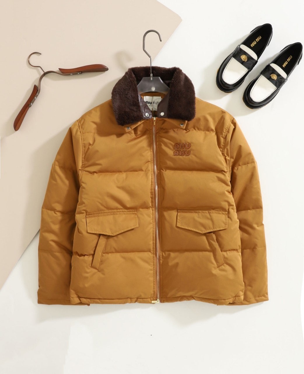 [국내배송]미우미우 [ MIU ] 여성 수입 로고 자수 개버딘 패딩 다운자켓