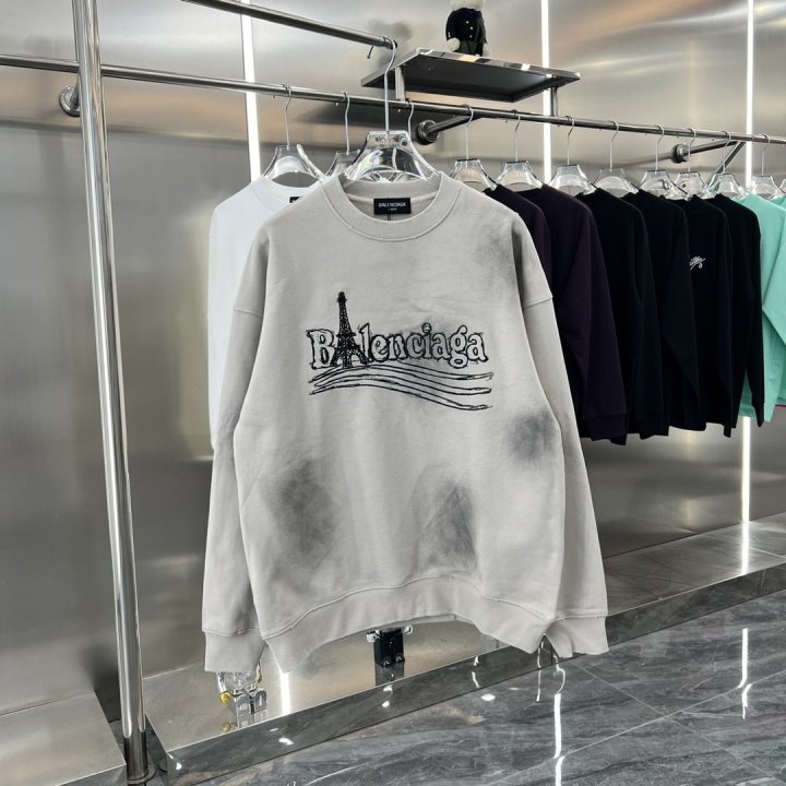 [국내배송]발렌시아가 에펠탑 자수로고 맨투맨 워싱 티셔츠