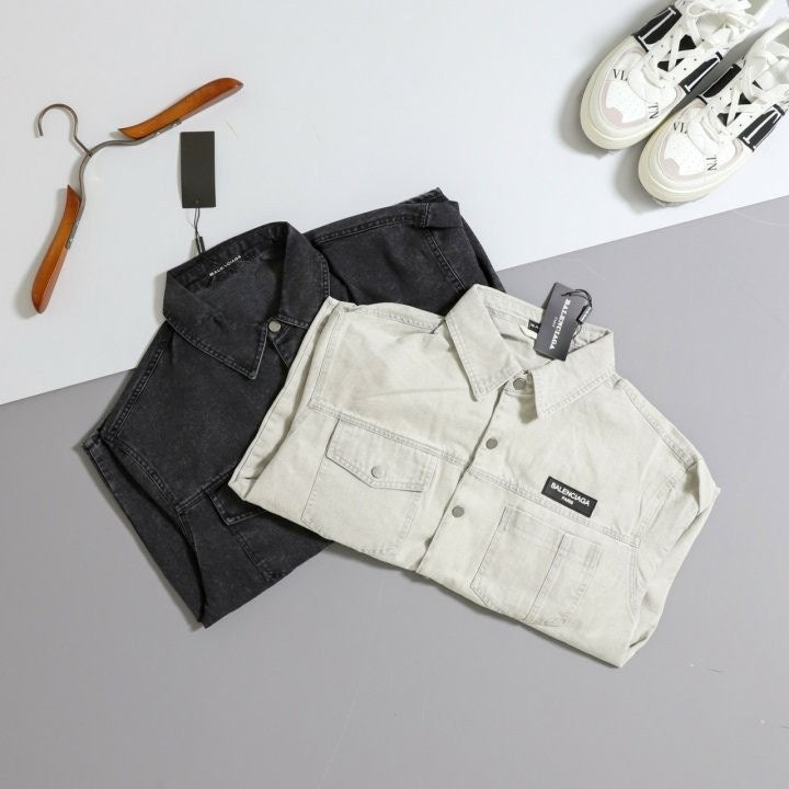[국내배송]발렌시아가 오버핏 백 로고 워시핏 데님셔츠