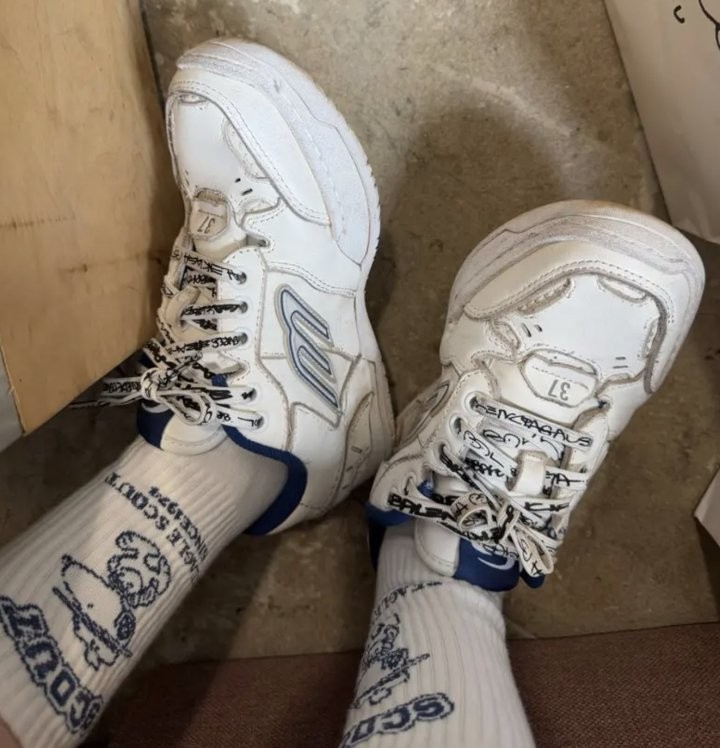 [국내배송]발렌시아가 햄튼스 원 아웃 스니커즈 화이트 다크 블루