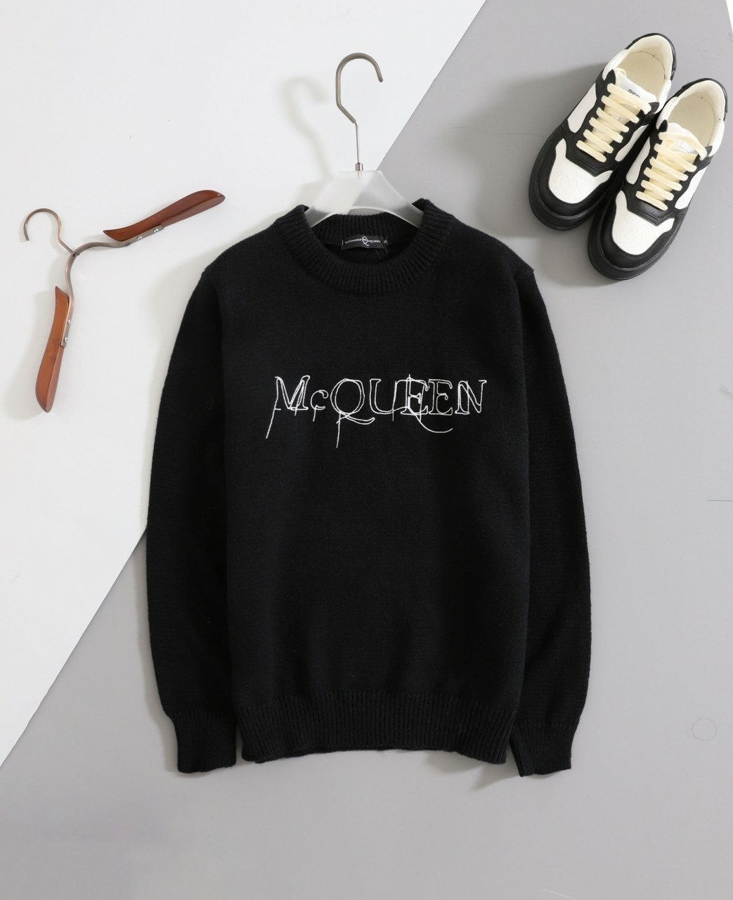 [국내배송]알렉산더맥퀸 [ M*QUEEN ] 수입 울 스웨터 화이트 메탈로고 크루넥 수량