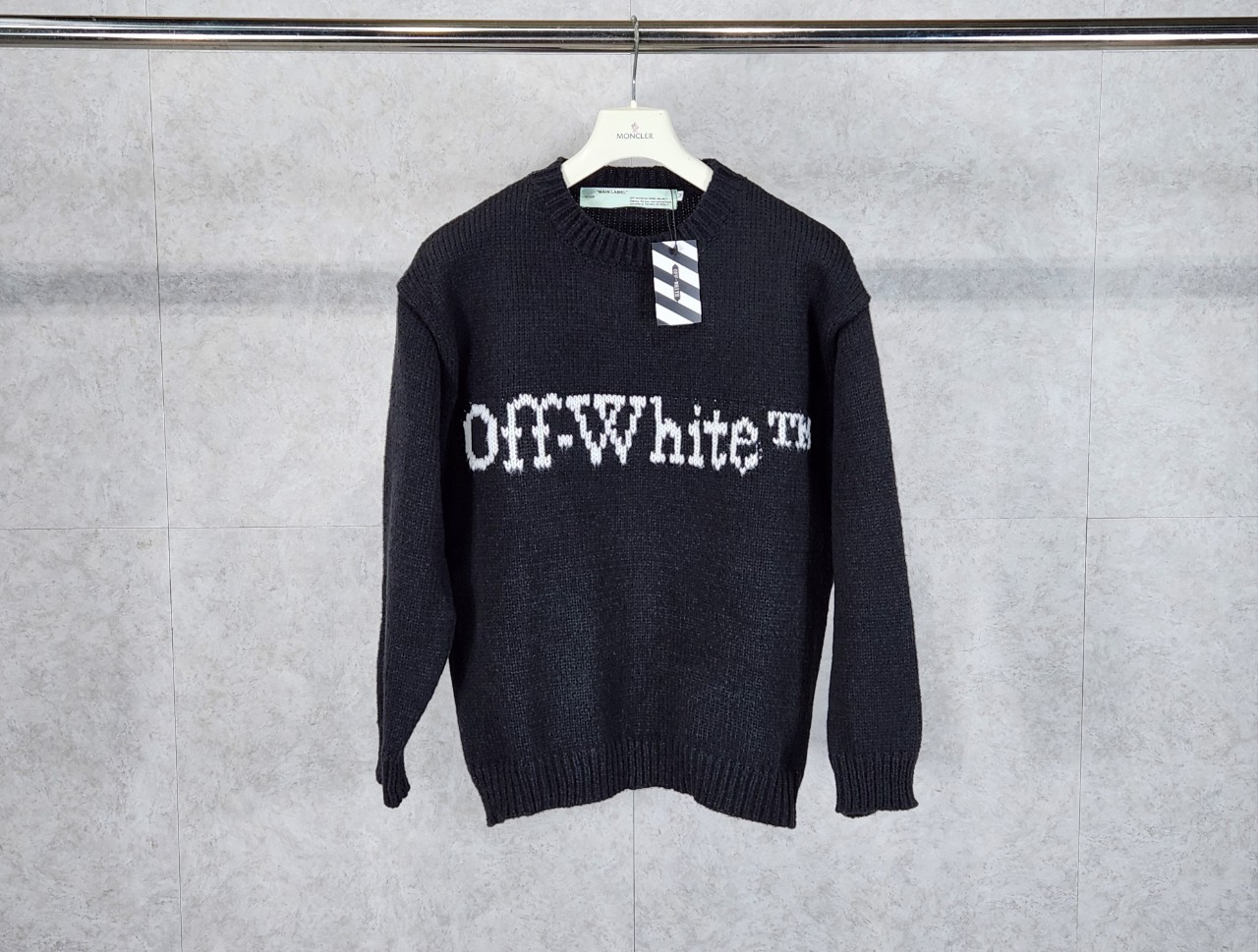 [국내배송]오프화이트 로고 디테일 크루넥 스웨터 니트 수량