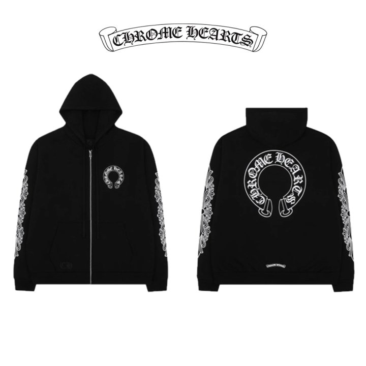 [국내배송]크롬하츠 홀스슈 플로랄 플리스 후드집업(블랙)