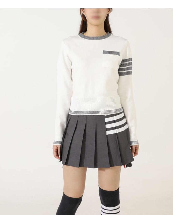 [국내배송]톰브라운 저지 스티치 코튼 콘트라스트 포인텔 티핑 4-바 풀오버