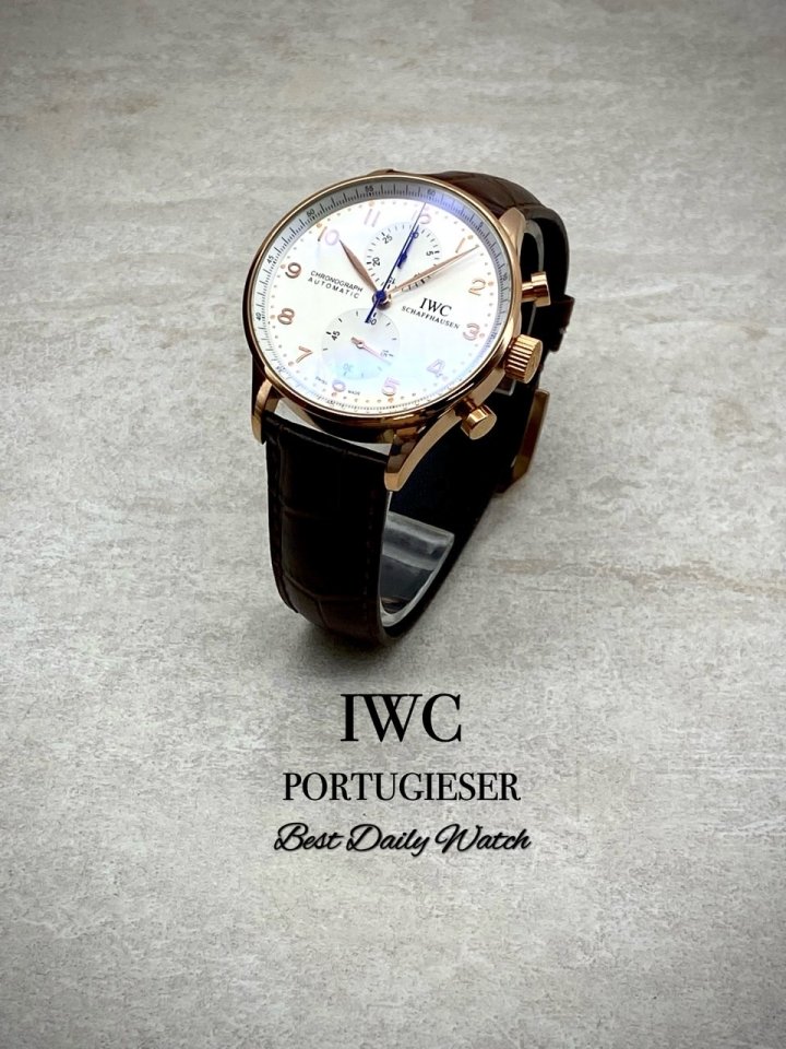 우아한 디자인과 적당한 두께의 케이스로 이루어진 포르투기저 크로노그래프는 포르투기저 라인에서 가장 인기있는 시계 중 하나로, 간결한 다이얼 안에서 핸즈와 숫자, 시간 측정장치가 서로 조화를 이루고 있습니다