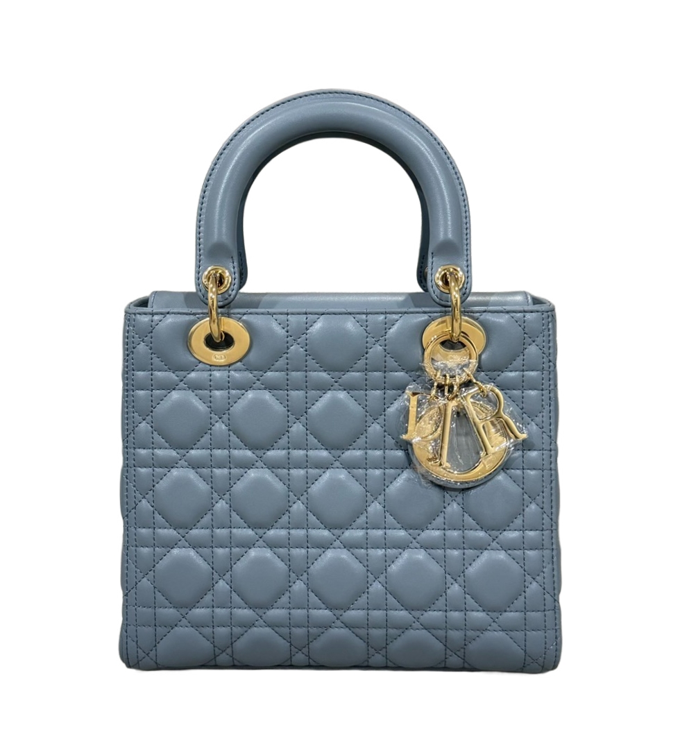 레이디 디올 미디엄백(클라우드 블루/까나쥬/램스킨)