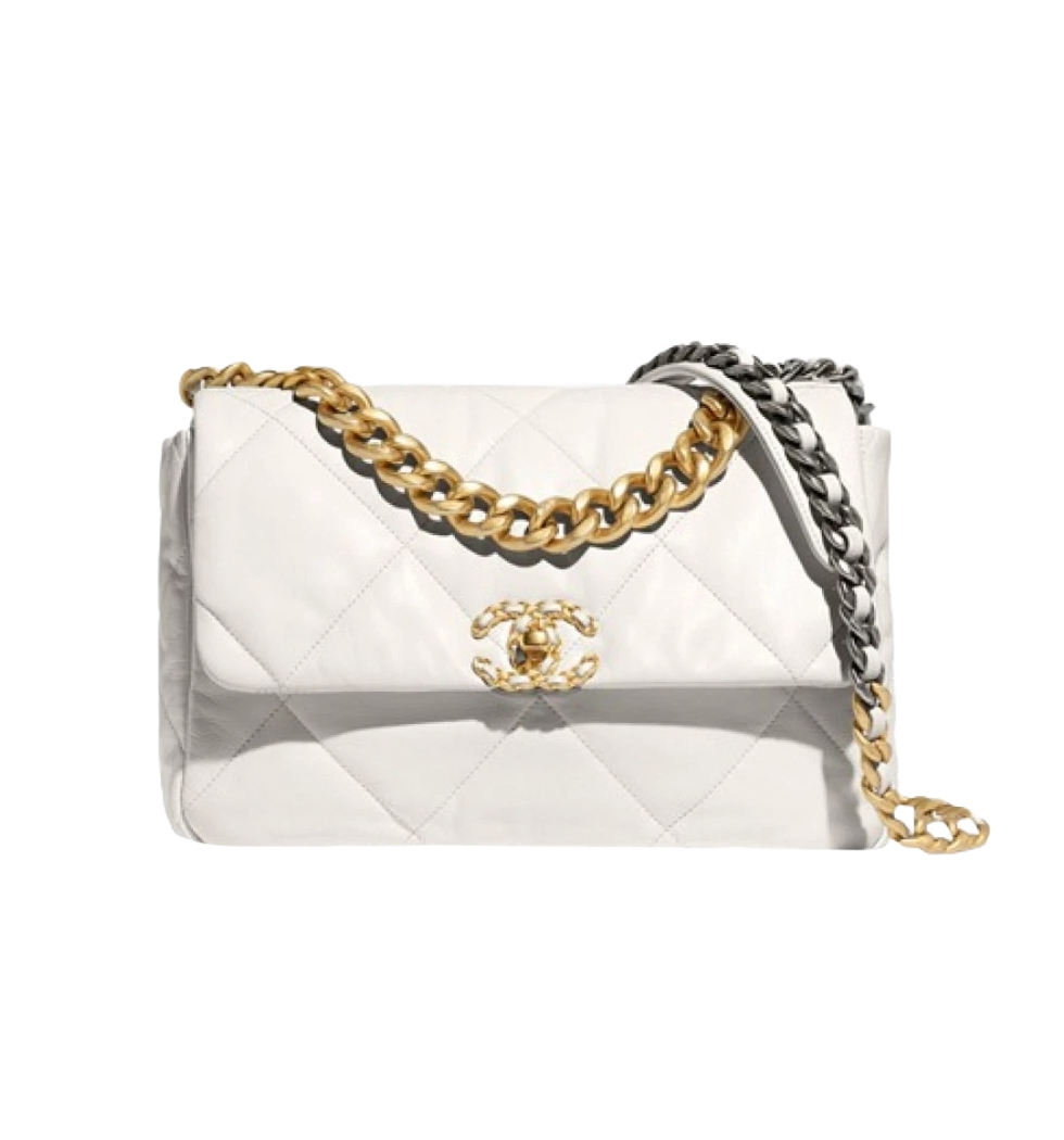 [프리미엄/해외배송]샤넬 19백 라지 플랩 백(화이트/금장/램스킨)