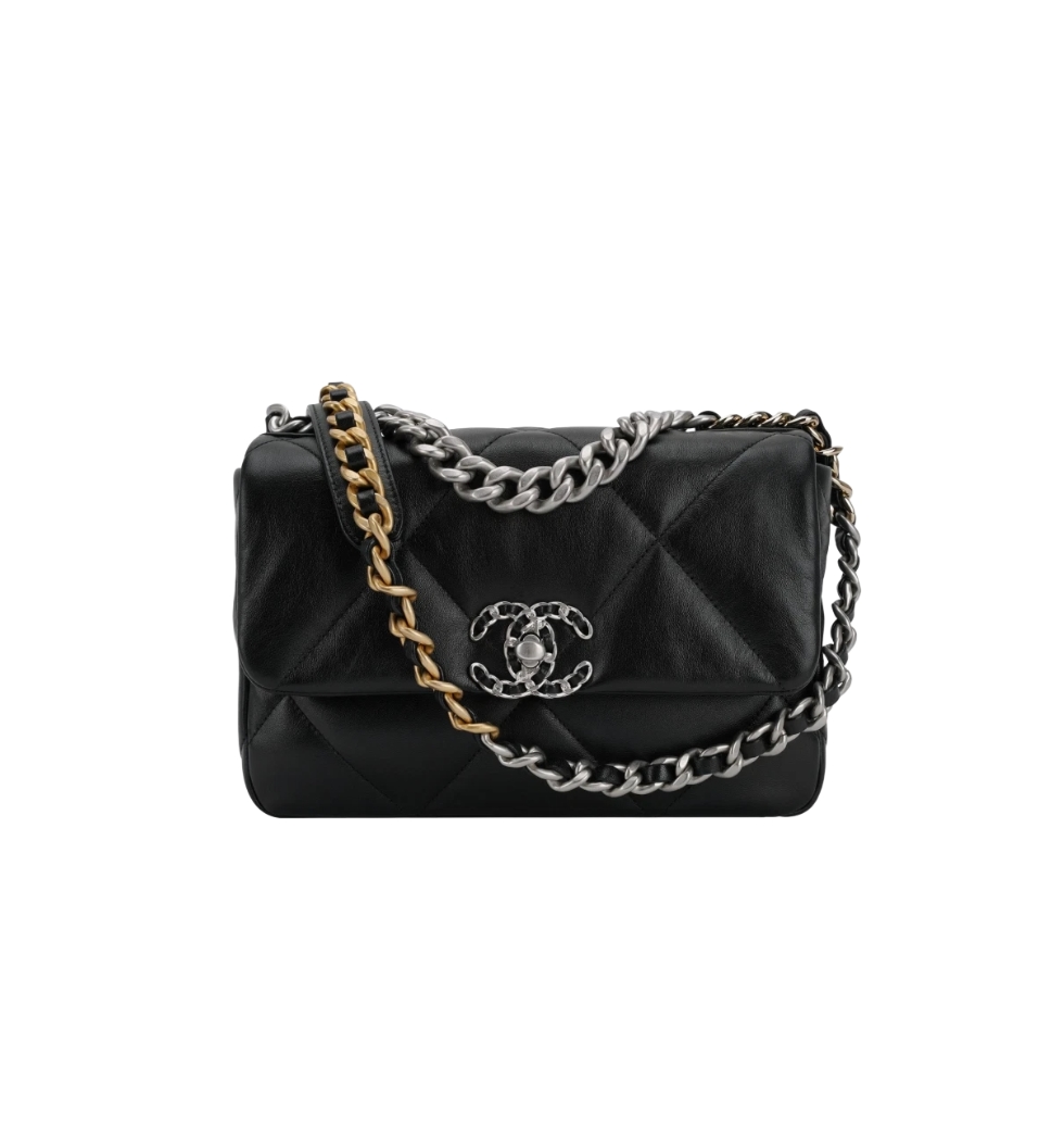 [프리미엄/해외배송]샤넬 19백 스몰 플랩 백(블랙/은장/램스킨)