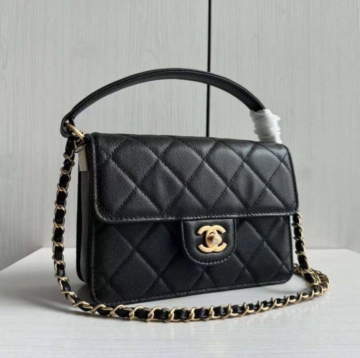 [국내배송]샤넬 24K 탑핸들 플랩백 캐비어 블랙 금장 AS6262