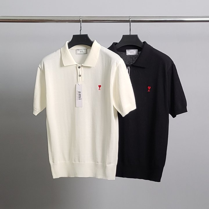 [국내배송]아미 스몰하트자수 린넨 반팔 카라 니트
