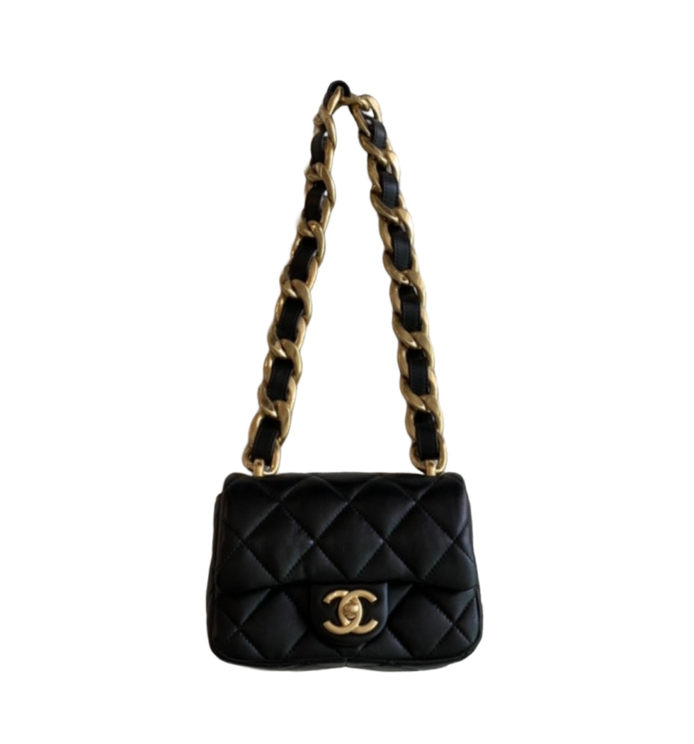 클래식 빅체인 미니 플랩 백(블랙/금장/램스킨)