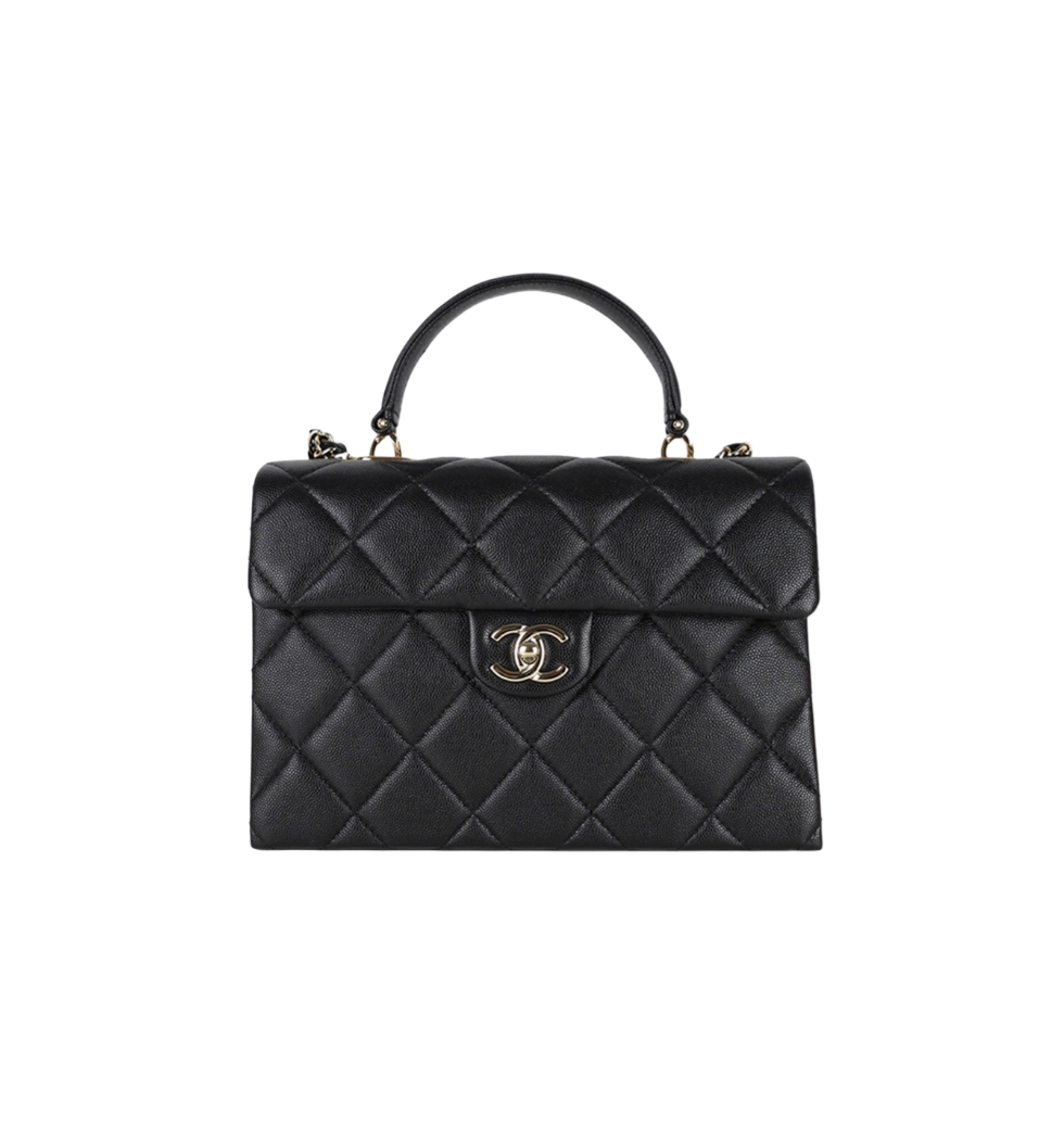 [프리미엄/해외배송]샤넬 탑핸들 체인 미디엄 플랩 백(블랙/금장/캐비어)
